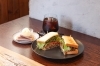 フードメニューではひき肉、トマト、レタスなどをサンドしたボリューミーな「ミートマサンド」が人気だそうです。野菜たっぷりでマスタードもアクセントになっています。